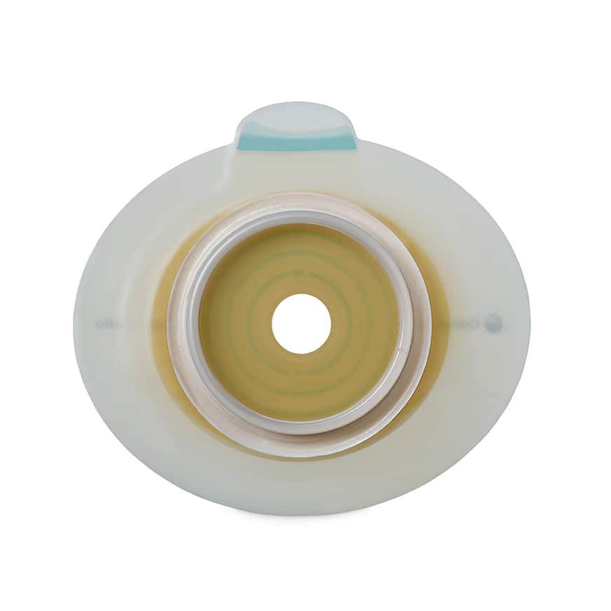 Det finns också 1-delsbandage där basplattan har ett litet starthål och sedan kan klippas till i önskad storlek och form. Är stomin oval eller oregelbunden, vilket är vanligt de första månaderna postoperativt, är detta en bra produktlösning för att säkerställa en bra passform.